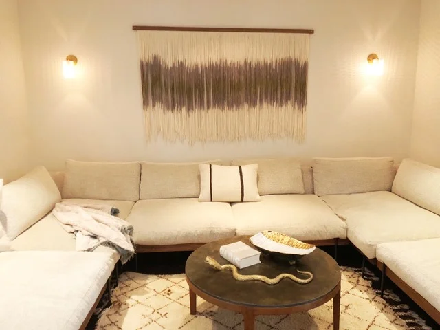 Im thrilled about this month’s Designer Spotlight, as it features one of my favorite designers to follow on Instagram. Seriously, if you don’t follow @houseofhoney yet, do yourself a favor and go click “follow” ASAP. I’ll wait. You might recognize her famous master bathroom which has been reposted to Instagram and pinned on Pinterest about a million times, justifiably. You’ll also see a photo of this stunning bathroom in the photos below. House of Honey is a Los Angeles and Montecito-based multi-disciplinary studio focused on residential and commercial interior design. Led by Creative Director, Tamara Honey, the firm is adept at translating clients’ goals and lifestyles into thoughtful and meaningful design. Combining intimate knowledge of the location, creative and construction process, they weave that story through all phases of the design process. I was able to meet Tamara at a party in Pasadena last year hosted by our mutual friend, Kristen Blazek of A 1000 X Better. Soon after our meeting, Tamara ordered a tapestry for her own home, which now hangs in her media room (You’ll see this piece in the photos below, too). I’m excited to share my chat with Tamara and more about her process and aesthetic in this month’s Designer Spotlight Series!