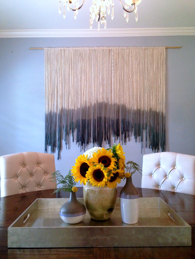 It was interesting. It added texture and a unique look to my basic dining room. It felt warm and inviting. I couldn’t stop looking at the way the dye layers faded into each other so effortlessly, creating a peaceful and organic feel. From the wooden dowel at the top, the fibers hung down at various lengths and the line that the strands created at the bottom of the piece was unstructured and so natural. With an overall dimension of 6 feet wide and 4 feet tall, this was a large statement piece that was unlike anything I had ever seen.