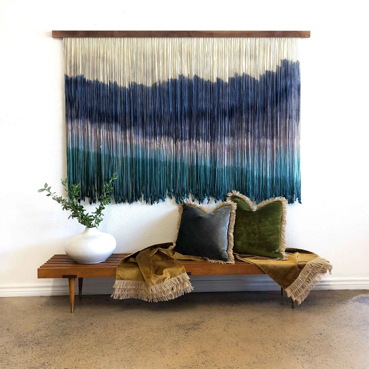 Almost 5 years ago when I created my first tapestry, I had the vision of building a canvas but with movement. Although a self-taught painter, I wanted to create a design on my Canvas With Movement® tapestry, and dye seemed to be the best medium. I temporarily abandoned my paints and have spent many years perfecting my dye techniques. I love the fluidity of dye paired with the movement from hundreds of wool strands. My art has taught me to “go with the flow” and release control of my intended design allowing each piece to come alive with the freedom to move.