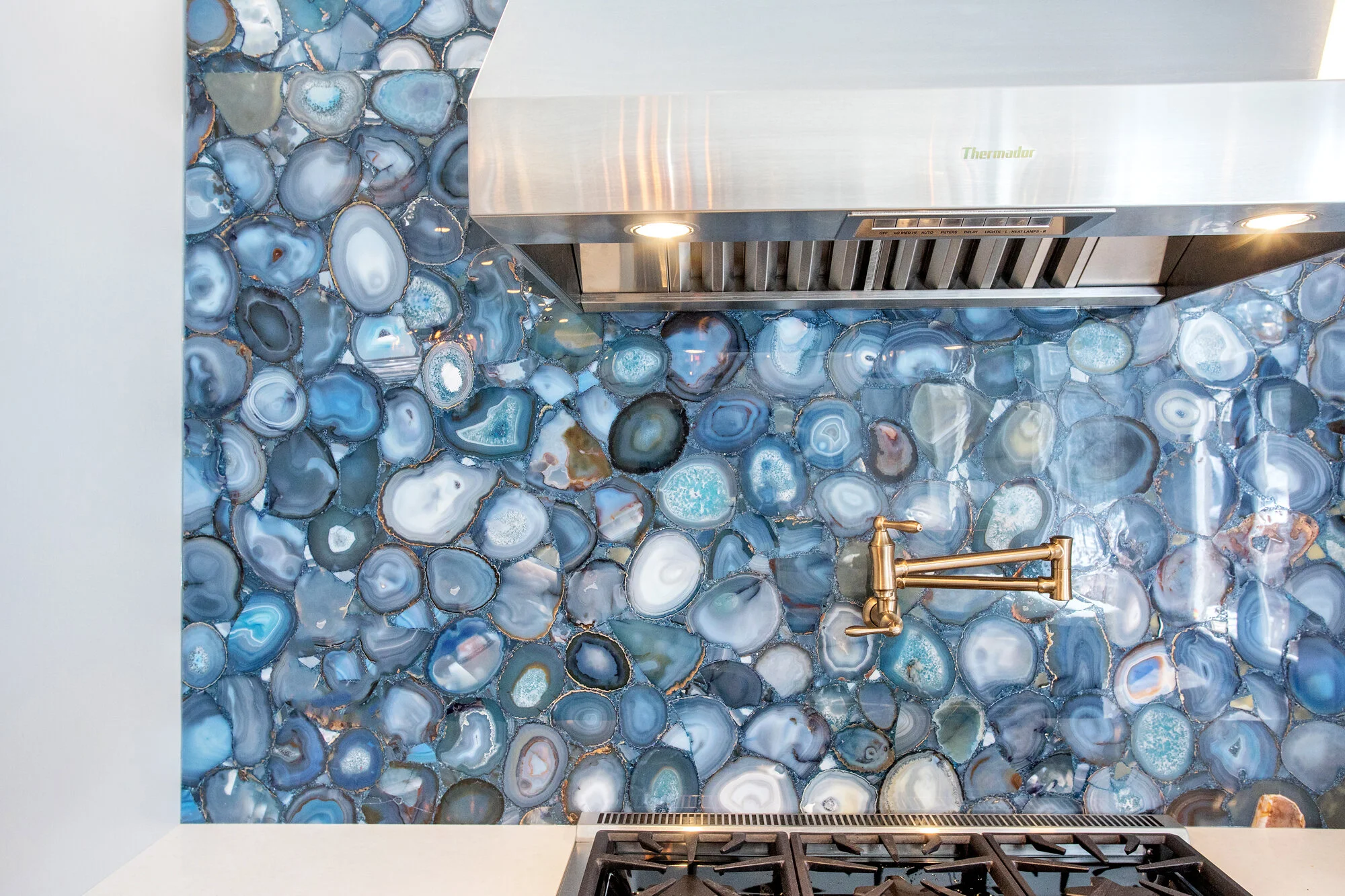 We use Caesarstone in home and commercial project countertops (as seen below) for interest and durability.