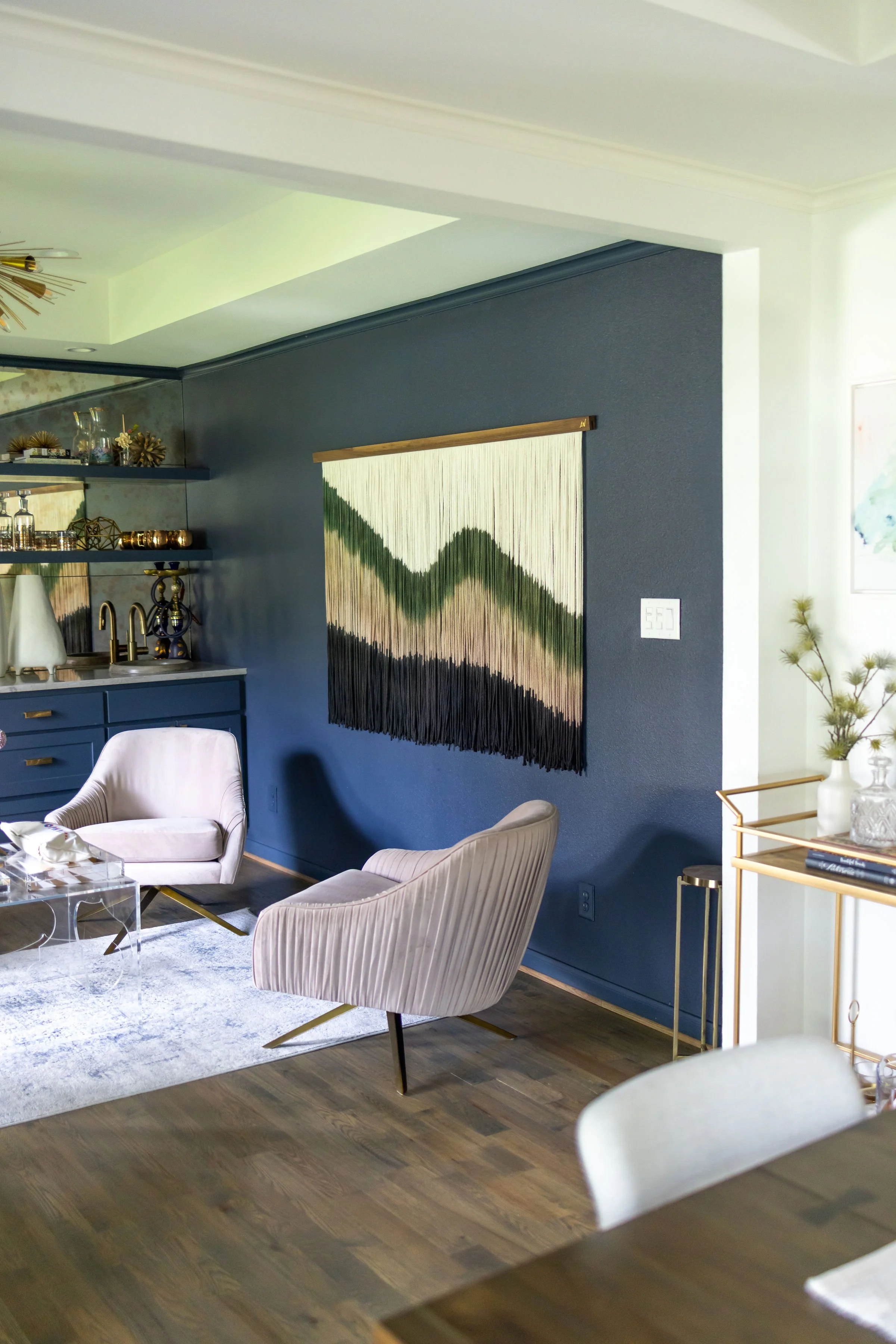 “I was beyond excited when I found the perfect piece of art to compliment our navy blue walls and blush chairs. Lauren Williams Art has brought so much personality and conversation into this room and has quickly made this my favorite room in our home.”