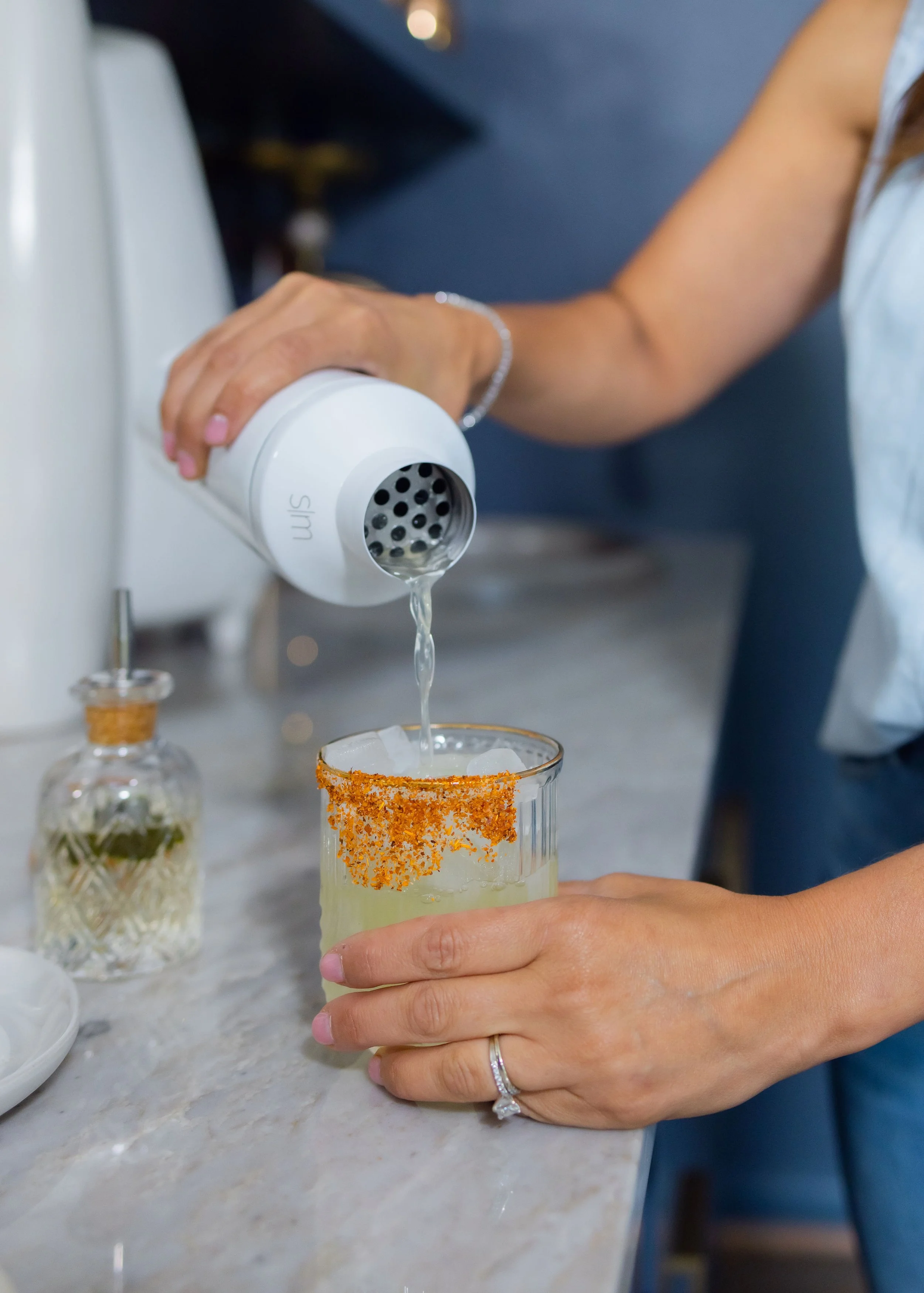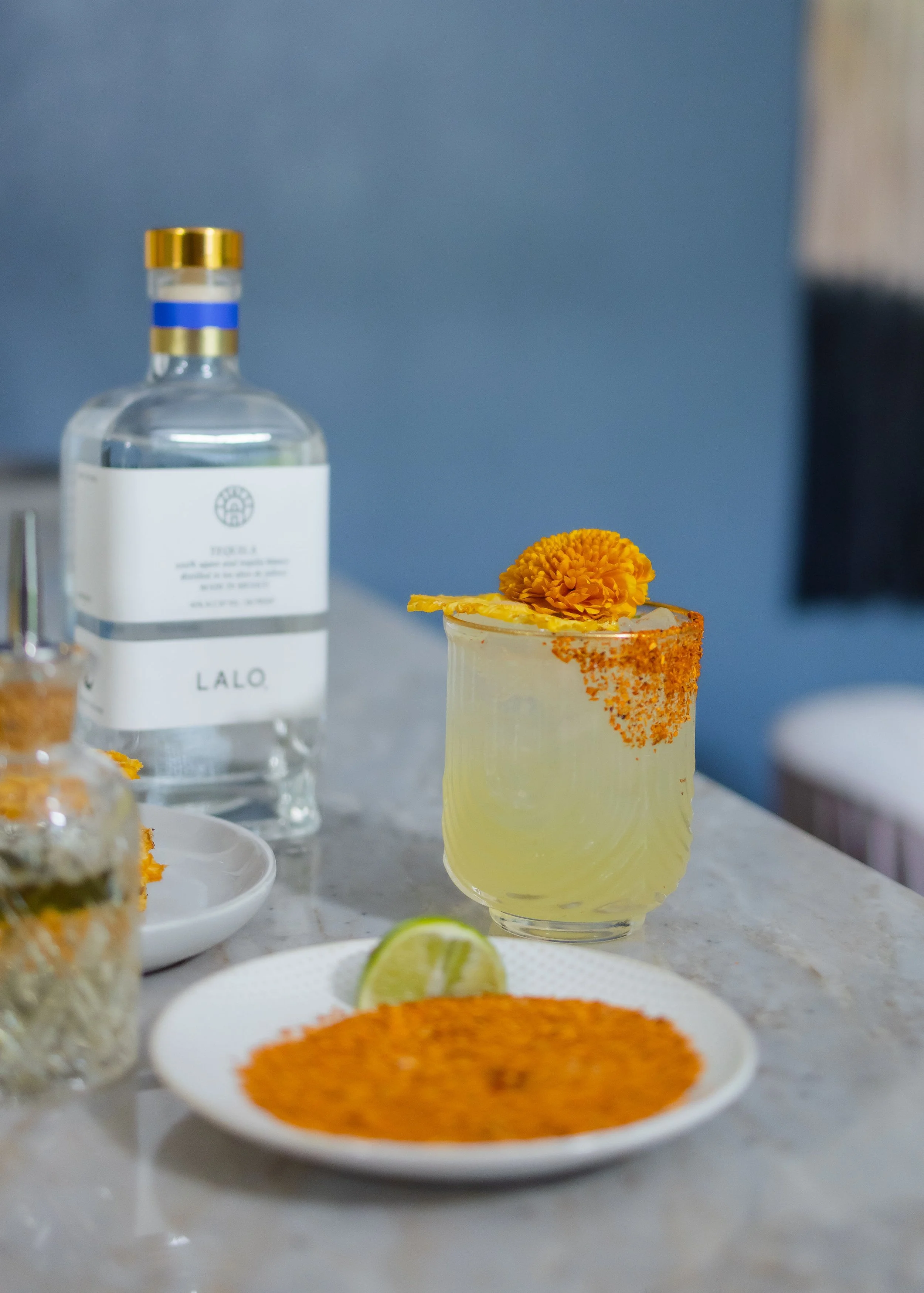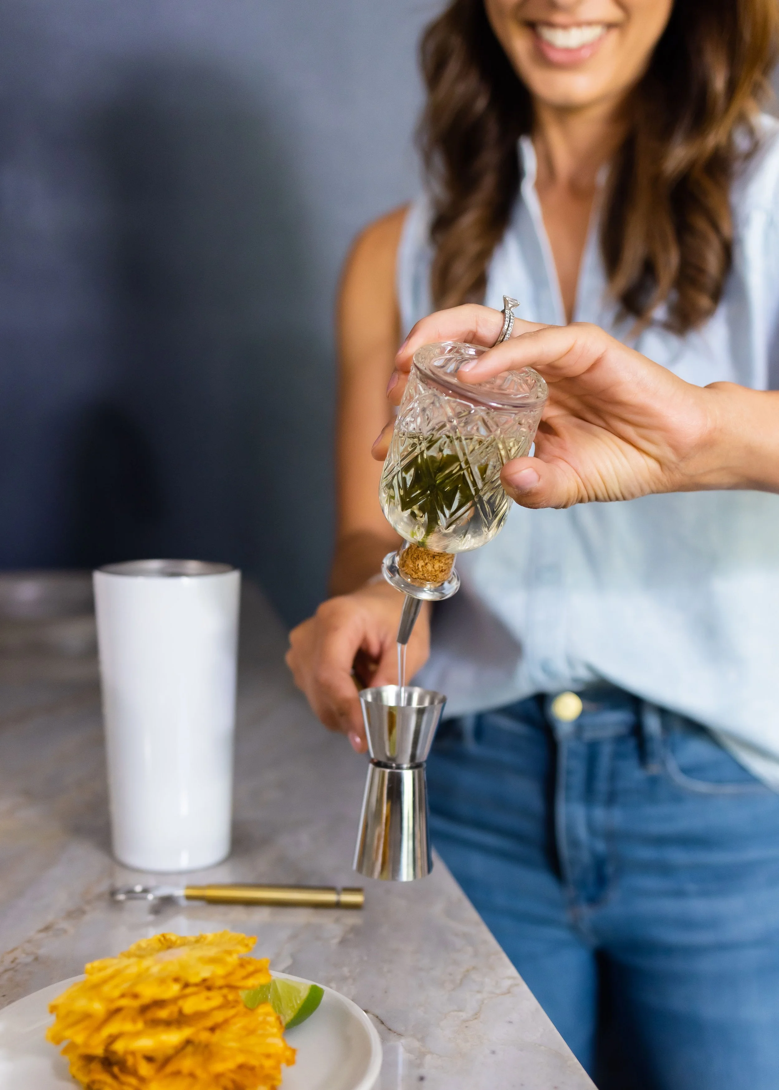 “As Lauren & I discovered our love of art and cocktails together, I knew that I needed to create a special cocktail to showcase this space and her “Canvas with Movement”. Spicy Pineapple Tequila Spritz is beautiful in color and bursting with flavor. I love the simplicity that tequila brings to this cocktail with the sweet and tart flavor of pineapple juice and the spicy homemade jalapeño simple syrup.”