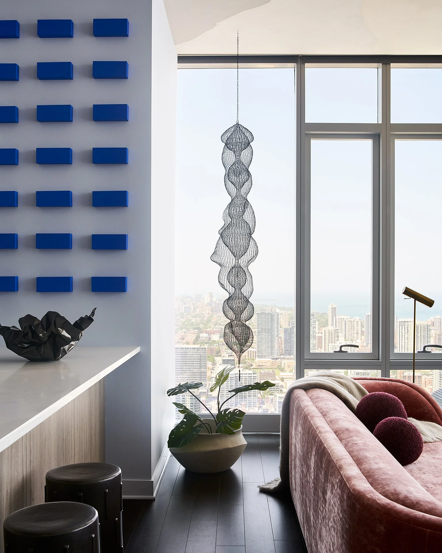 During this Discovery Phase, we also talk a bit about aesthetics... but it is the least important part when trying to figure out how to embody their personality in the design. Artwork is by far the most significant means through which we incorporate personality into our designs, paying tribute to their hobbies, favorite destinations, memories, and often even their idiosyncrasies... One of my favorite pieces of art in our Wolf of Wacker project (besides yours!) is a photo by Miss Aniela. We found this amazing piece of art because we were Googling our clients’ passions and quirks: balloons and fashion! When we arrived to measure our client's new home, it appeared nearly empty, with the exception of around 20 scattered balloons strewn across the floor. Rather than presuming they were remnants of a party, I inquired about their presence, only to discover that he receives regular balloon deliveries. He explained that they bring cheerfulness, fill the space, and greatly contribute to his happiness. Just like someone may love having fresh flowers in their home, he likes balloons. This isn’t something he explicitly told me in our onboarding, but it is a meaningful glimpse into his personality and lifestyle.