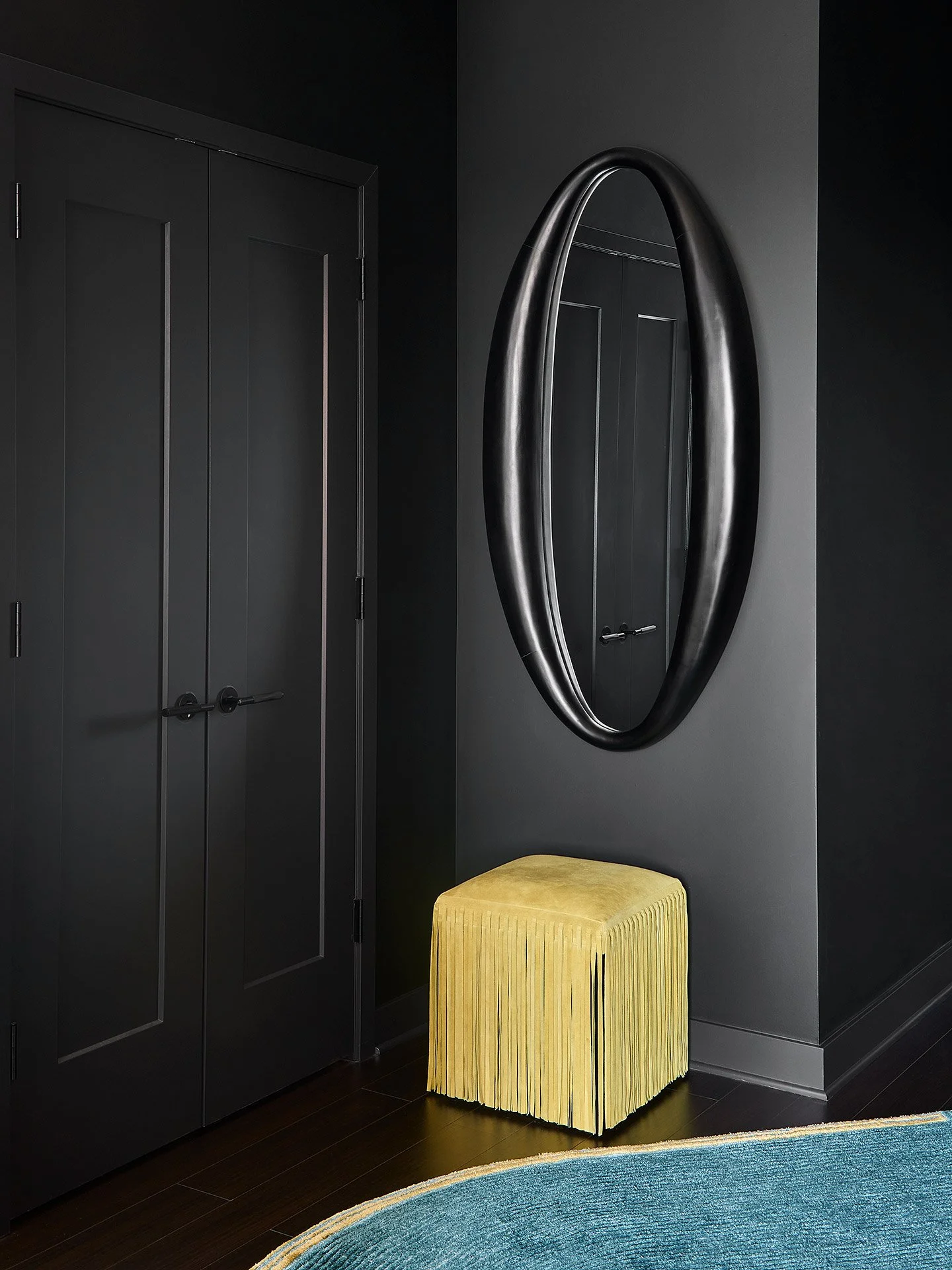 Every project is different, and I pride myself on the fact that no two designs of mine look the same — but there are definitely some signature details I love to incorporate as often as I can. For example, you’ll often see murals, dramatic dark moments, trim and doors painted to blend into their surroundings, as well as a focus on the ceiling.
